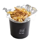 French fries, special sauce, mozzarella cheese, cheese sauce, fried onions.